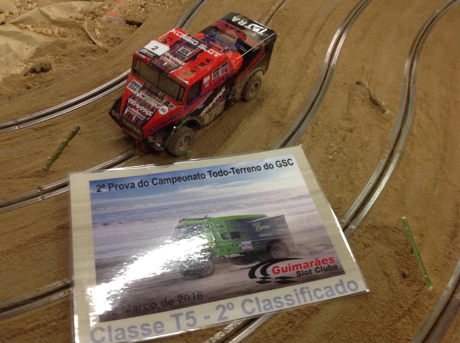 No final da classe T3 foi a pista de novo polvilhada com farinha para se dar início à classe dos monstruosos T5 e aí também os Tatra da XC-Raid eram as figuras de cartaz. O GTTeam trazia para a prova dois Tatra conduzidos pelos estrangeiros Augusto Amorim e Nuno Aguilar contra o único Tatra da SC1968/XC-Raid Slot Team pilotado por Alfredo Carvalho, que deu luta enquanto pode mas não conseguiu levar de vencida Augusto Amorim que levou de vencida a prova. Mais uma vez problemas mecânicos atrasaram Nuno Aguilar que ainda assim conseguiu terminar no lugar mais baixo do pódio. Sem dúvida alguma o prémio Azar de Março vai para este piloto. De realçar a prova muito segura de Pedro Testas que com um camião MAN quase de origem conseguiu obter a melhor classificação não XC. Parabéns.